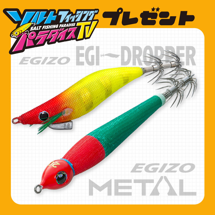 「EGIZO メタル、EGIZO エギドロッパー」を、クイズ正解者の中から抽選で3名様にプレゼントします!