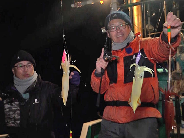 今回はヒロセマンと広岡千明ちゃんが和歌山県串本沖でイカメタル。川上さん、柴田さんも参戦し、4人でアカイカ(ケンサキイカ)、スルメイカ、ヤリイカを狙っていきます。