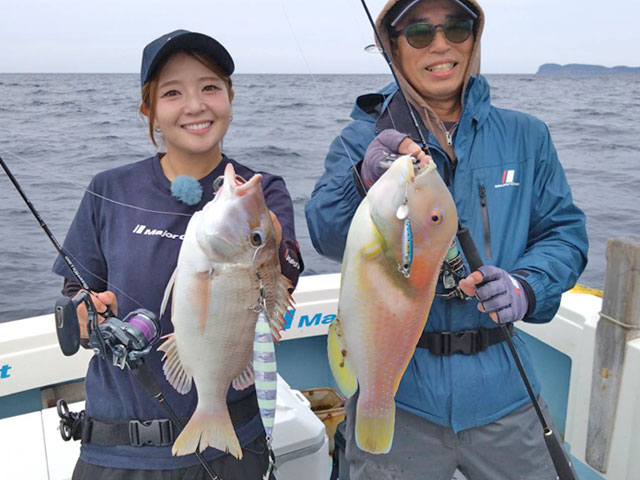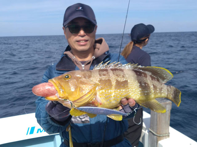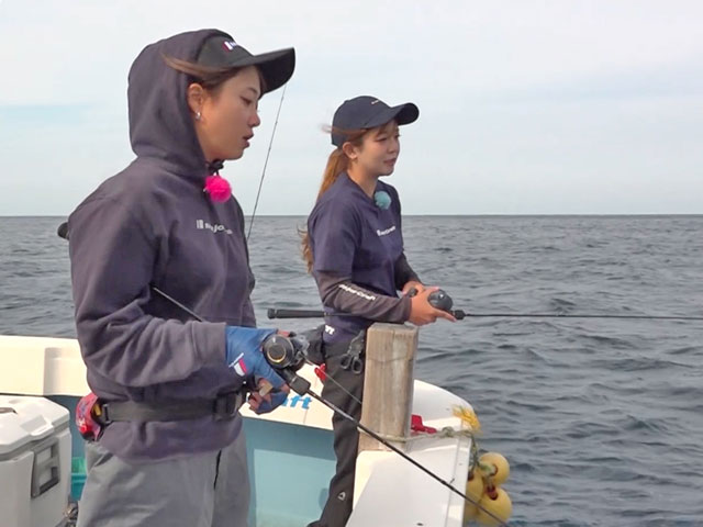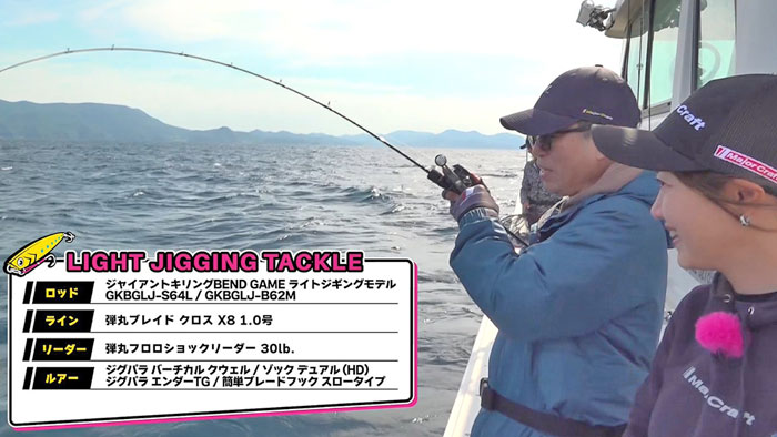 さすがは玄界灘、ヒットの度に魚種が増えていきます。『ジャイアントキリング BEND GAME』を思いっきり曲げてどんどん釣っていく3人。果たして、釣果は!?お楽しみに!